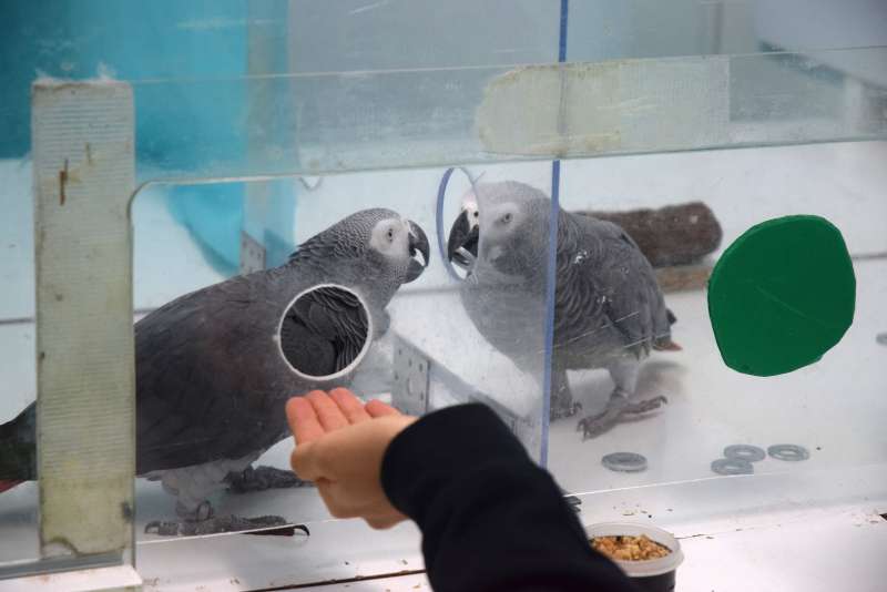 Im Labor der Außenstelle auf Teneriffa bekommt das Graupapageien-Weibchen Bella in ihrer Plexiglas-Kammer ein paar Metallmarken zugeschoben. Sie hat gelernt: Sie kann die Wertmarken mit einer der Forscherinnen tauschen – und so eine leckere Futterration einheimsen. Es gibt nur ein Problem: Das Loch in ihrer Plexiglaskammer, durch das der Tauschhandel stattfindet, wurde versperrt.