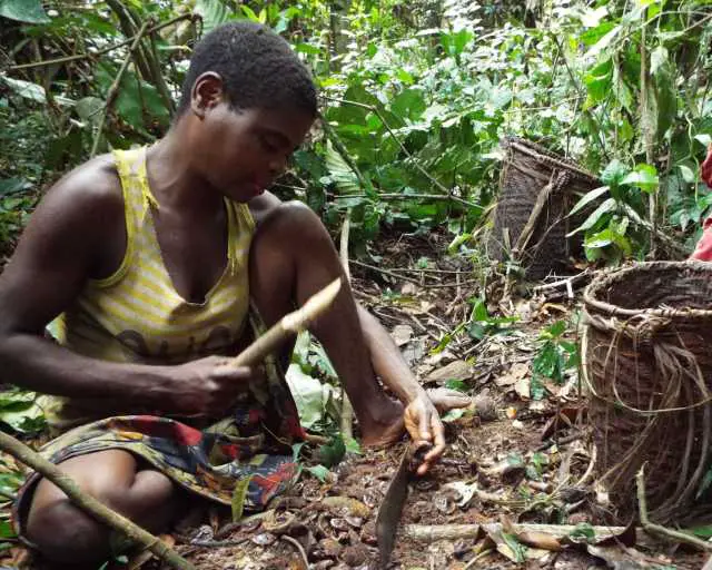 Dazu verglichen die Forschenden die für ihr Nüsseknacken bekannten Taï-Schimpansen von der Elfenbeinküste mit den Mbendjele BaYaka, die in den Wäldern der Republik Kongo gewöhnlich die gleiche Nussart, Panda oleosa, knacken. Sie folgten Gruppen von Mbendjele-Frauen, die im Wald nach Nahrung suchten, und wendeten dieselben Effizienzmessungen an wie zuvor bei den Taï-Schimpansen, um festzustellen, wie beide Arten sich die Technik im Wald aneignen.