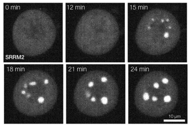 Man kennt es aus der Küche: Werden Aceto balsamico und Olivenöl miteinander vermischt, trennen sich die beiden Flüssigkeiten. Runde Essigtropfen formen sich, die an der Oberfläche des Öls schwimmen. Physikalisch spricht man von zwei Phasen, die sich in der Flüssigkeit bilden. Auch im Innern von Zellen findet die Phasentrennung von Molekülen statt, in dem sich Flüssigkeitströpfchen im Zellplasma bilden.