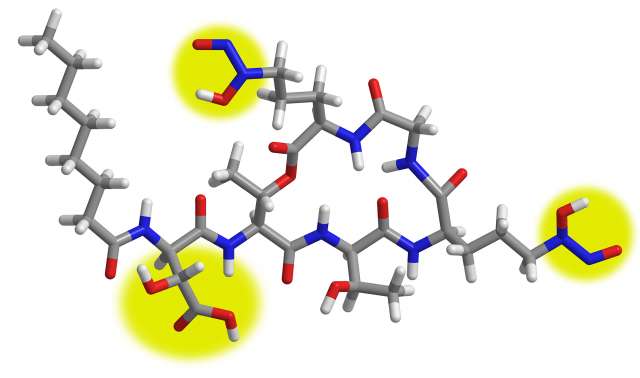 Ein Jenaer Forscherteam hat ein neues Siderophor („Eisenträger“) entdeckt. Das Gramibactin genannte Molekül wird von Bakterien gebildet, die im Wurzelbereich von Mais und Weizen leben. Es bindet schwerlösliches Eisen aus der Umgebung und bringt es in den bakteriellen Stoffwechsel ein. Die Getreidepflanzen profitieren davon, da sie das von den Bakterien mobilisierte Eisen aufnehmen und mehr Chlorophyll bilden können. Gramibactin bindet Eisen auf eine aus der Natur bisher nicht bekannte Art. Die im Fachjournal Nature Chemical Biology veröffentlichte Studie beleuchtet das komplexe Zusammenspiel des Wurzelmikrobioms mit der Wirtspflanze und dessen Bedeutung für die menschliche Ernährung.