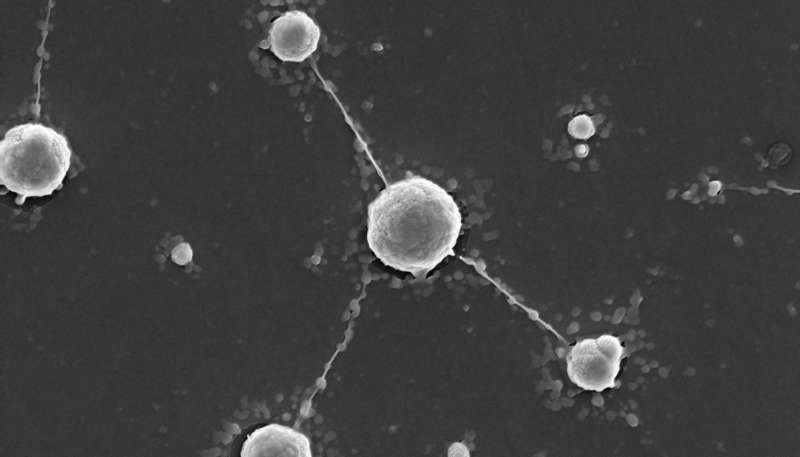 "Am Beispiel Metallosphaera sedula, das in heißer Säure gedeiht und durch Metalloxidation atmet, haben wir untersucht, ob komplexe anorganische Systeme, die auf Wolfram-POM-Clustern basieren, das Wachstum von M. sedula aufrechterhalten und die Zellproliferation und -teilung bewirken können", so Milojevic. Die Wissenschafter konnten zeigen, dass die Verwendung von anorganischen POM-Clustern auf Wolframbasis den Einbau von heterogenen Wolfram-Redox-Spezies in mikrobielle Zellen ermöglicht. Die metallorganischen Ablagerungen an der Grenzfläche zwischen M. sedula und W-POM wurden in fruchtbarer Zusammenarbeit mit dem Österreichischen Zentrum für Elektronenmikroskopie und Nanoanalyse (FELMI-ZFE, Graz) im Nanometerbereich aufgelöst.