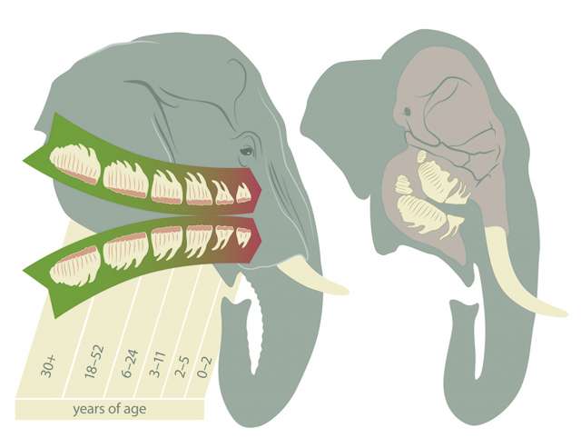 Im natürlichen Lebensraum sollte dieses Phänomen übrigens nicht zu beobachten sein: Da Elefanten das ganze Jahr über Junge bekommen, aber saisonalen Schwankungen im Nahrungsangebot ausgesetzt sind, haben Tiere der verschiedensten Altersstufen und abhängig vom jeweiligen Zustand der Zähne Zugang zu unterschiedlicher Nahrungsqualität.