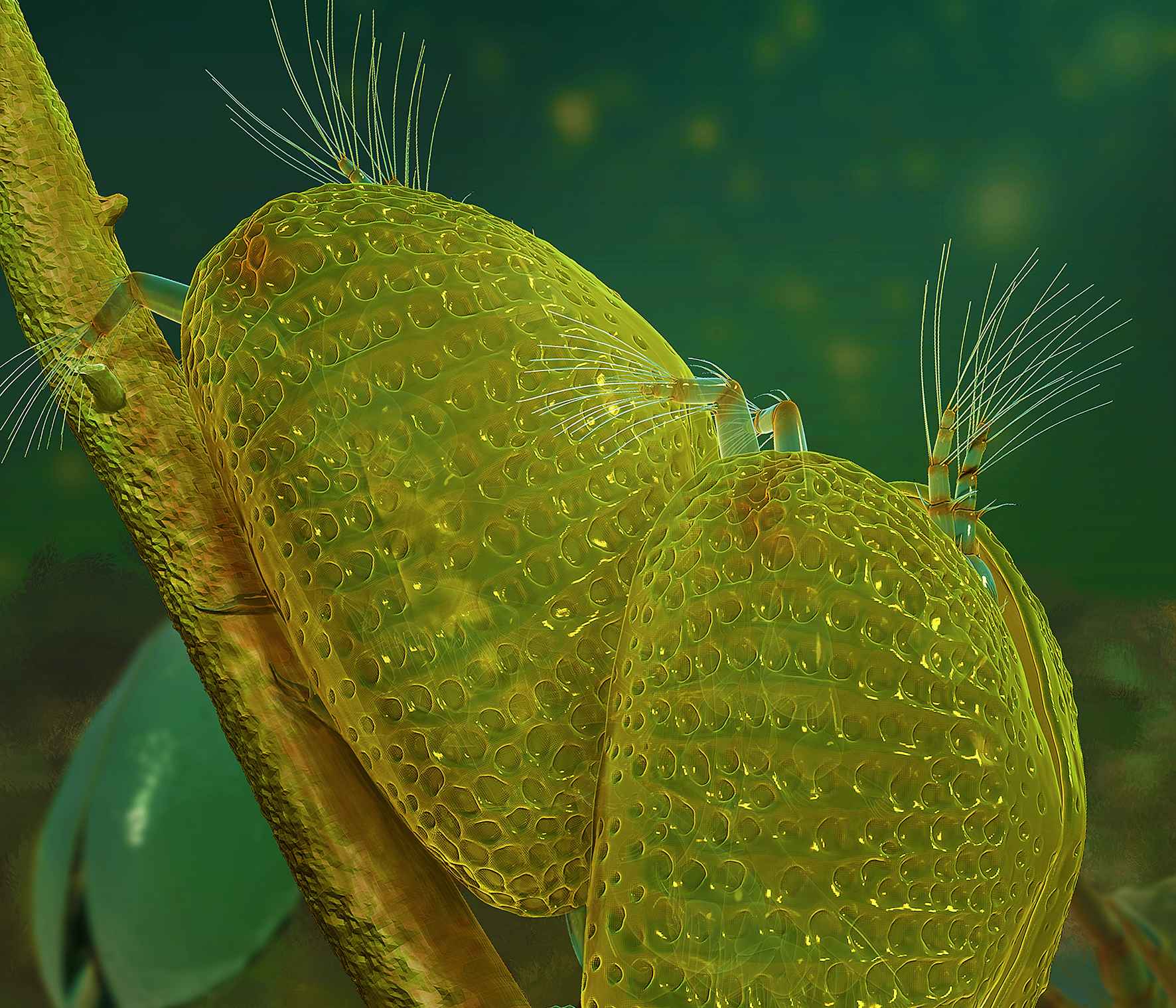 Mithilfe von Röntgenmikroskopie fertigte das Team computergestützte 3-D-Rekonstruktionen der in den Bernstein eingebetteten Ostrakoden an. Die Bilder enthüllten erstaunliche Details: In den Schalen waren nicht nur die winzigen Gliedmaßen der Tiere erhalten geblieben, die Forscher konnten auch deren Fortpflanzungsorgane sehen – und eben die 100 Millionen Jahre alten Spermien. Verblüffend war dabei, dass sie die Spermien ausgerechnet im Inneren eines Weibchens entdeckten – und zwar in den beiden beutelartigen Behältern, in denen die sie aufbewahrt werden, bis die Eier befruchtungsreif sind. „Dieses Weibchen muss sich kurz vor dem Einschluss im Baumharz noch gepaart haben“, sagt Studienautor He Wang von der Chinesischen Akademie der Wissenschaften in Nanjing. Die Rekonstruktionen enthüllten auch die charakteristischen muskulösen Spermienpumpen und zwei Penisse, mit denen männliche Muschelkrebse die Weibchen begatten.
