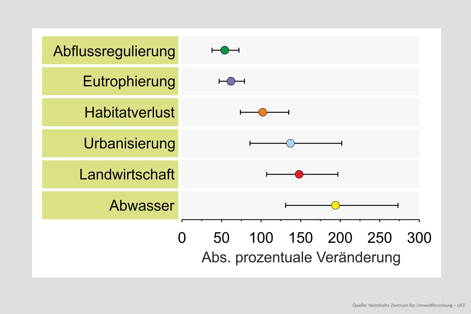 Ein weiteres wichtiges Ergebnis der Studie ist die vergleichende Bewertung der Stressoren: Welcher Stressor hat über alle ökologischen Funktionen hinweg die stärksten Auswirkungen? Deutlich auf Platz eins liegt die Einleitung von Abwässern. Auf dem unrühmlichen zweiten Platz die Landwirtschaft und auf Platz drei die Urbanisierung. „Das sind alles Bereiche, in denen wir dringend tätig werden müssen“, sagt Brauns. „Um die Gewässergefährdung besser abschätzen und passende Managementmaßnahmen einleiten zu können, sind die ökologischen Funktionen von Fließgewässern sehr gute und aussagekräftige Indikatoren. Das konnten wir mit unserer Metastudie zeigen. Wir hoffen, dass es in Zukunft vermehrt Studienansätze geben wird, die die ökologischen Funktionen von Fließgewässern in den Fokus nehmen. Und das am besten auf breiter Ebene weltweit – denn es besteht rund um den Globus dringender Handlungsbedarf.“
