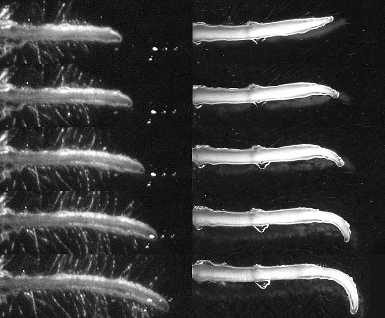 Aber welcher Entwicklungsschritt ermöglichte dieses rasche Reagieren auf die Schwerkraft? Durch die Analyse der einzelnen Phasen des Gravitropismus – von der Wahrnehmung der Schwerkraft über die Weiterleitung des gravitropen Signals bis zu den tatsächlichen Wachstumsvorgängen – stießen die Forschenden auf zwei zentrale Bausteine bzw. Prozesse, welche sich parallel entwickelten. In der Wurzelspitze sedimentieren mit Stärkekörnern vollgepackte Pflanzenorganellen namens Amyloplasten in Reaktion auf die Schwerkraft nach unten und fungieren so als Schwerkraft-Sensoren. Wie sich nun herausstellte, lagern sich die Amyloplasten in Folge dieses schon bekannten Sedimentationsprozesses jedoch ausschließlich in Nacktsamern und Blühpflanzen am untersten Ende der Wurzelspitze an. In früheren Pflanzen liegen die Amyloplasten hingegen mehr oder weniger zufällig im Wurzelgewebe verteilt vor und erfüllen damit nicht dieselbe sensorische Funktion wie in den Samenpflanzen.