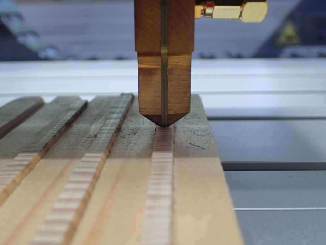 Hochfrequenzsonde der LIGNOSTATION beim Abtasten einer Holzprobe.
