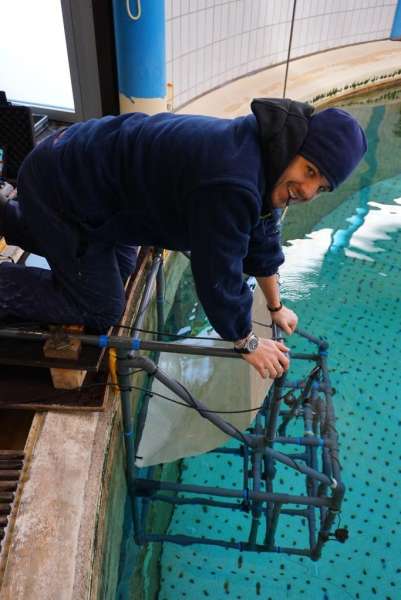 Ähnliche Jagdtechniken kennt man auch von weiteren Delphinarten, wie z.B. dem Großen Tümmler. „Diese ökologische Bedeutung und auch morphologische Untersuchungen der haarlosen Vibrissengruben legen nahe, dass auch Große Tümmler elektrische Felder wahrnehmen können“, sagt Tim Hüttner. Der studierte Biologe, der seinen Master in Biodiversität und Ökologie an der Universität Bayreuth abgelegte, hat diese Fragestellung nun unter Betreuung von Professor Guido Dehnhardt, der das Robbenforschungszentrum der Universität Rostock leitet und dort Orientierungsmechanismen mariner Säugetiere erforscht, im Rahmen seiner Doktorarbeit untersucht.
