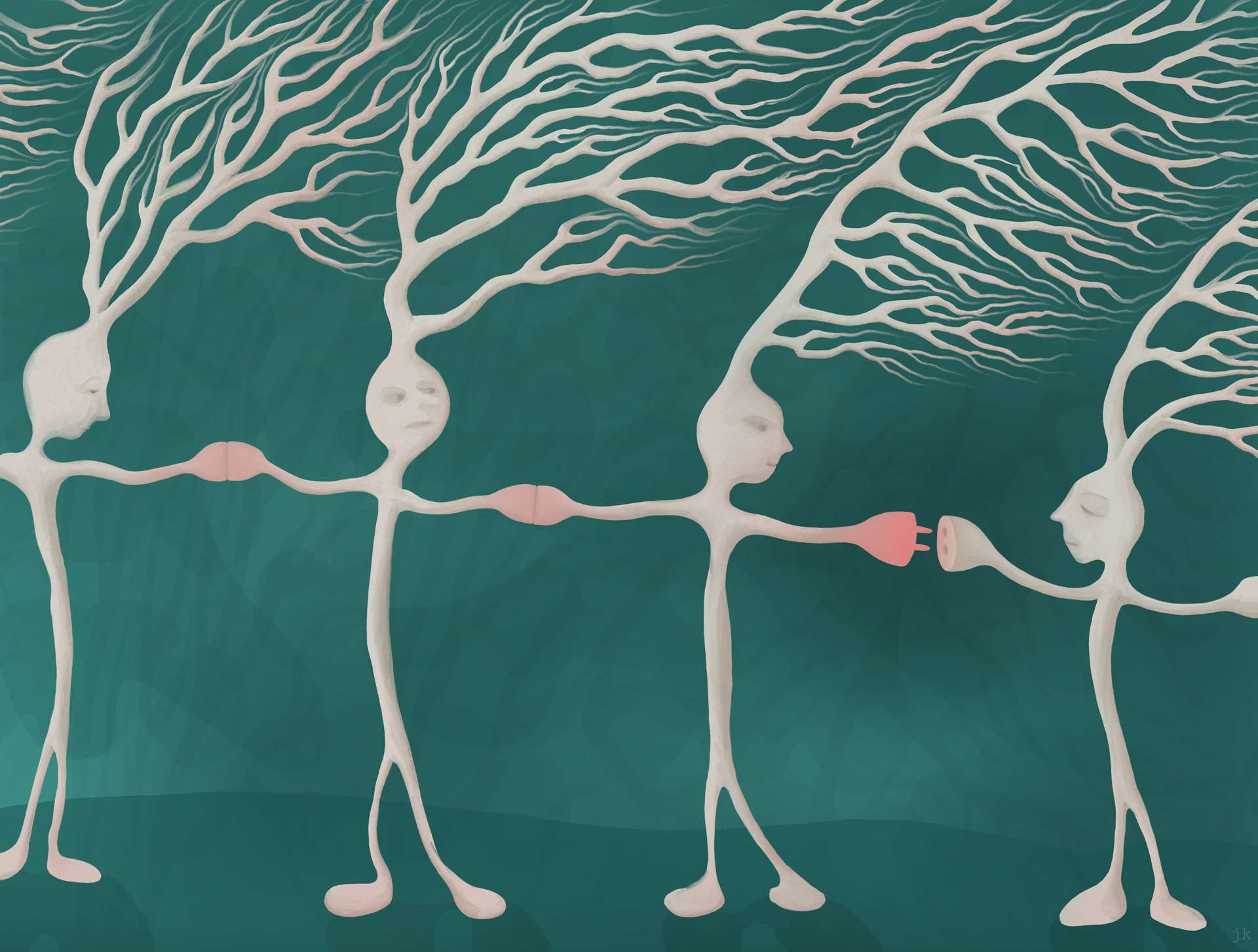 Nervenzellen kommunizieren über Synapsen: kleine Kontaktpunkte, an denen über chemische Botenstoffe ein Signal von einer Zelle zur nächsten weitergegeben wird. Das wissen wir vielleicht noch aus dem Biologieunterricht. Doch das ist nicht die ganze Geschichte. Neben den allgemein bekannten chemischen Synapsen gibt es noch einen zweiten, kaum bekannten Synapsentyp: die elektrische Synapse.