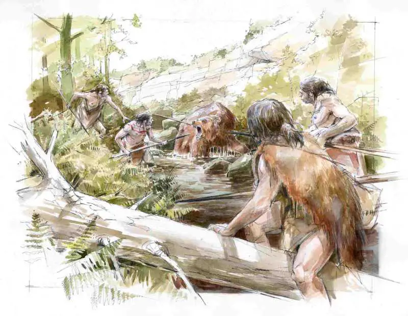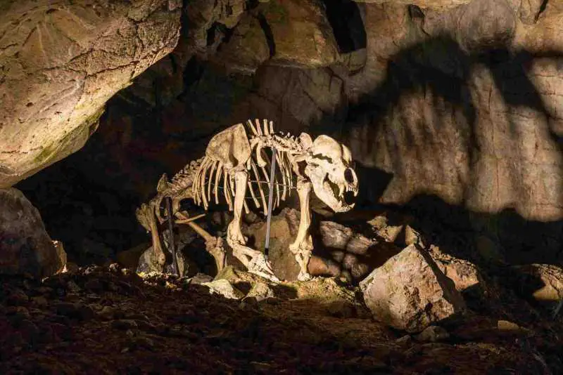 Der Mensch zog den Höhlenbären ihr Fell bereits vor 320.000 Jahren ab, mit dem Auftreten des Homo sapiens in Europa vor 45.000 Jahren intensivierte sich der Jagddruck auf das Tier, bis Ursus spelaeus schließlich vor 24.000 Jahren ausstarb. Mit 1,70 Meter Schulterhöhe und einer Länge bis zu 3,5 Metern war der Höhlenbär deutlich größer und massiger als sein Verwandter, der Braunbär, der bis heute überlebt hat.