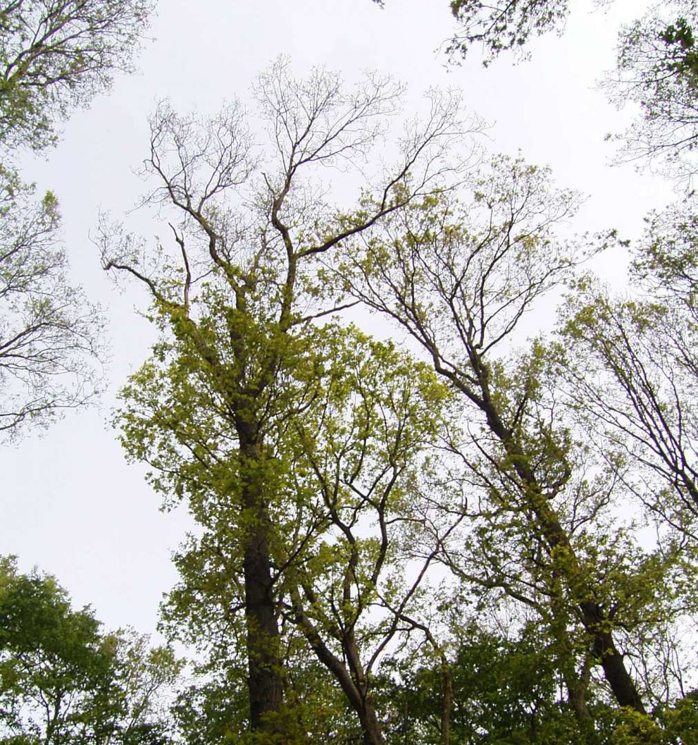 Kahlgefressene Eichen sind ein Bild, das in den letzten Jahren immer wieder zu sehen war. Verursacher sind häufig die massenhaft auftretenden Raupen des Eichenwicklers.