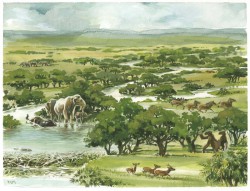 Rekonstruktion von Landschaft und Leben in Rheinhessen vor 8,5 Millionen Jahren.