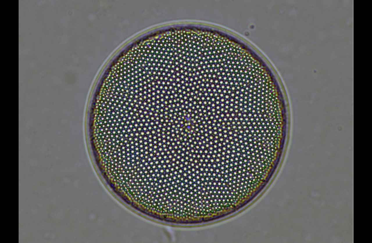 Eine Mikrofotografie einer zentrischen Kieselalge aus dem Indischen Südozean aus dem Holozän.