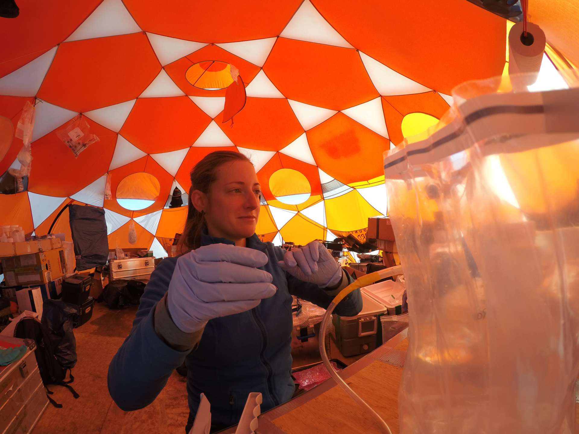 Vor Ort haben die Forschenden – quasi als Vital-Funktion – die Photosynthese-Aktivität der Eisalgen gemessen, in Abhängigkeit der Gabe verschiedener Nährstoffe, u.a. Phosphor und Stickstoffverbindungen. Eine deutliche Steigerung der Photosynthese konnten sie nur feststellen, wenn sie die Algen mit Phosphor versorgten. „Das zeigt uns, dass Phosphor hier der limitierende Nährstoff ist. Je mehr davon zusätzlich im Angebot ist, desto stärker wachsen die Algen noch. Zusätzlicher Stickstoff bewirkt keine weitere Vermehrung“, sagt die Geomikrobiologin Jenine McCutcheon.