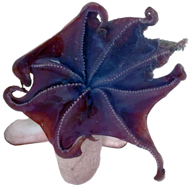 Der zwischen den Armen gespannte Schirm, mit dem der Dumbo langsam im Wasser nach unten schwebt und dabei Würmer und Krebse wie in einer Glocke einfängt, reicht zudem vom Mund aus gesehen nur knapp über die Hälfte der Arme. “Bei Dumbooktopusarten, die vor allem frei im Wasser schweben, ist der Schirm deutlich länger”, sagt Ziegler. Das deute auf eine Lebensweise der neuen Spezies nah am Meeresboden hin, weil der Schirm sonst bei Bewegungen am Grund hinderlich wäre.