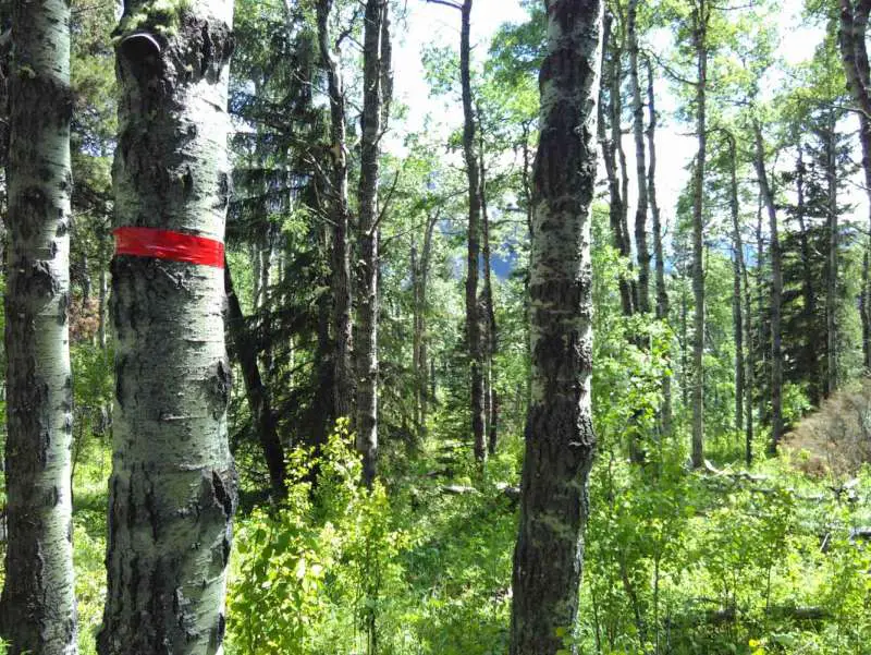 Typischer Pappelwald im Untersuchungsgebiet nahe Calgary, Alberta, Kanada.