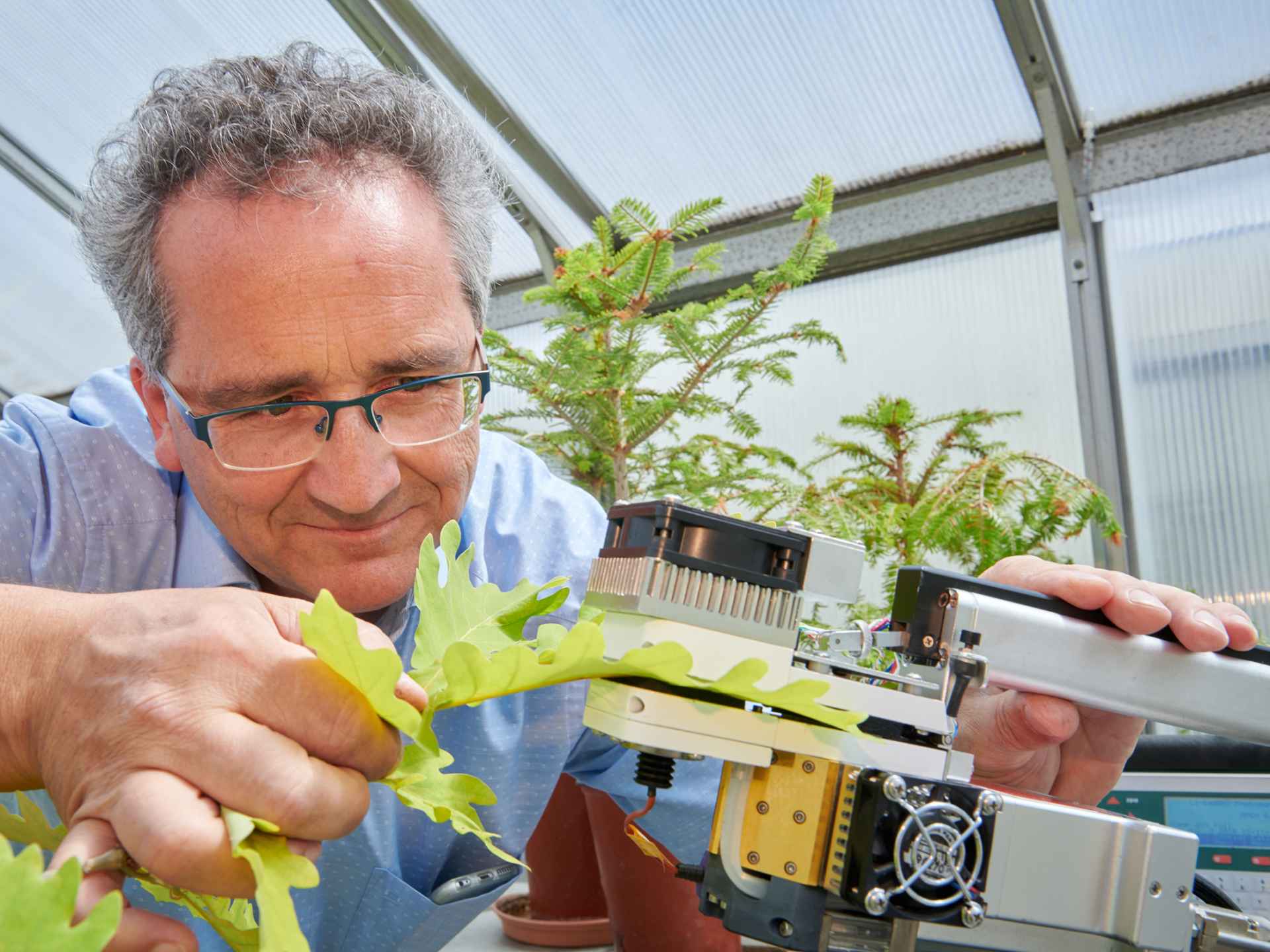Im Gewächshaus: Privatdozent Dr. Jürgen Burkhardt vom Institut für Nutzpflanzenwissenschaften und Ressourcenschutz der Universität Bonn.