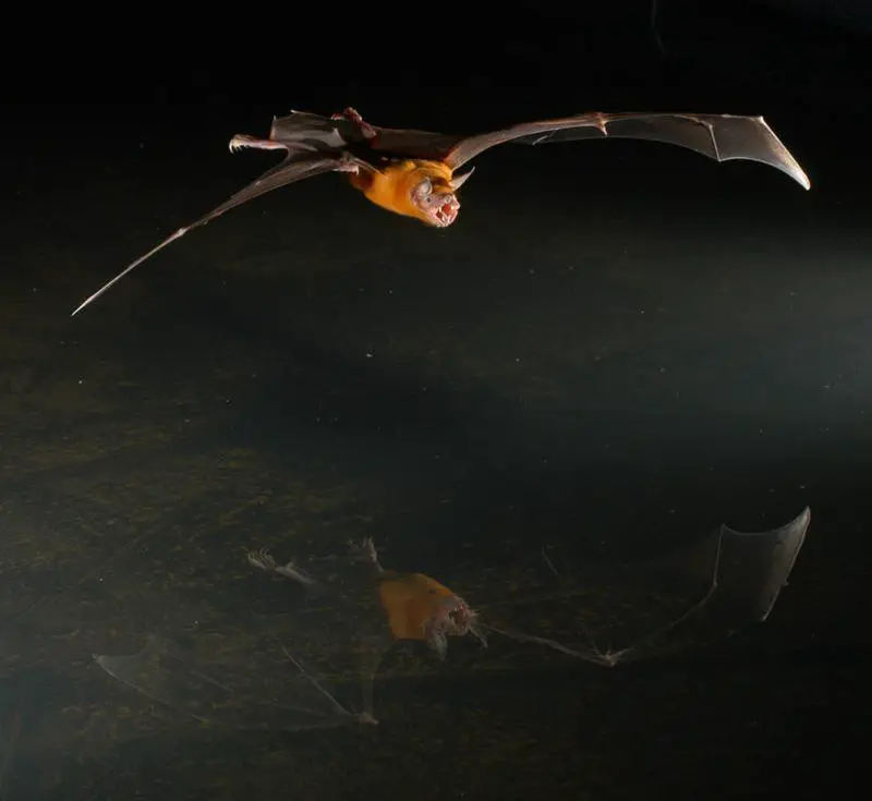 Wenn es Nacht wird in den Tropen der neuen Welt, geht sie auf die Jagd: die Fledermaus Noctilio leporinus. Sie frisst nicht nur Insekten, sondern auch kleine Fische, was für Fledermäuse sehr ungewöhnlich ist. Denn alles, was unter der Wasseroberfläche ist, bleibt dem Echoortungssinn eigentlich verborgen, weil die Ortungssignale nicht unter die Wasseroberfläche vordringen können. Trotzdem jagt das Große Hasenmaul, wie die Fledermausart auf Deutsch heißt, auch kleine Fische. Ihre hochspezialisierte Echoortung erfasst die Ultraschallreflektionen von Wasserspritzern und Kräuselwellen, die Fische bei Kontakt an der Wasseroberfläche hinterlassen, wenn sie kurz aus dem Wasser springen.