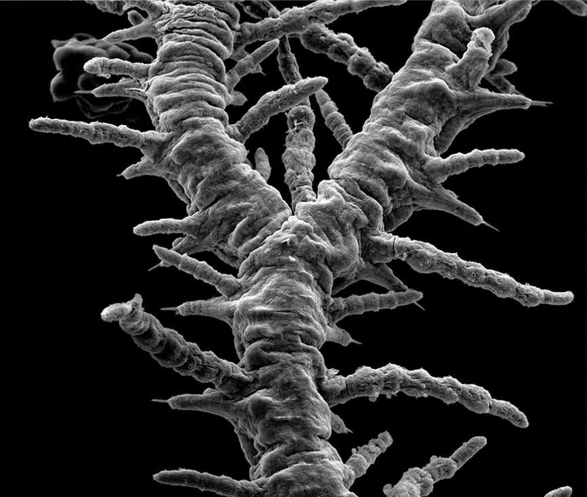 Allerdings zeigen sie auch viele Unterschiede in den genetischen Grundlagen sowie der Körperform. Der asymmetrisch verzweigte Körper wurde vermutlich von ihrem letzten gemeinsamen Vorfahren vererbt, der sich an das Leben in einem Schwammkanalsystem angepasst hatte. Die Grundlage für die evolutionäre Entwicklung hin zum verzweigten Körper könnte auf drei Aspekten basieren: Erstens auf der – für viele Würmer typischen – Eigenschaft, während ihres gesamten Lebens neue hintere Segmente zu produzieren; zweitens auf ihrer Fähigkeit, sich durch Nachwachsen zu regenerieren; drittens auf der Möglichkeit, während der Fortpflanzung mehrere neu gebildete Segmente gleichzeitig zu produzieren und abzustoßen.