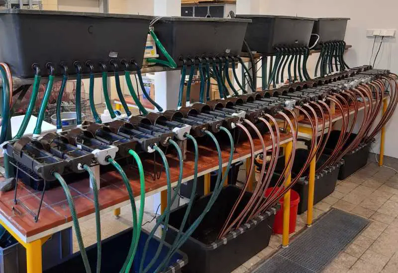 Für die Untersuchung entnahmen die Forschenden Wasser aus dem Bach Bieber in Hessen. Im Labor erzeugten sie während der zehntägigen Versuchsphase einen geschlossenen Wasserkreislauf. Mittels RNA-Sequenzierung entschlüsselten sie genetische Reaktionen der untersuchten Organismen, die durch das Pestizid hervorgerufen wurden und erhielten darüber Informationen, welche Gene durch das Pestizid aktiviert oder gehemmt wurden.