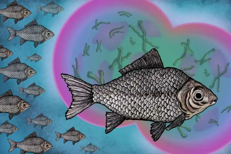 Der Giebel ist hexaploid- er besitzt also gleich sechs Chromosomensätze. Vier davon sind durch die Kreuzung nicht-verwandter Fischarten zusammengekommen - die anderen zwei wurden durch Kreuzung mit einem nahe verwandten Fisch hinzugefügt. „Vermutlich ist es bei diesen Kreuzungen irgendwann zu Problemen bei der Bildung der Keimzellen gekommen. Das könnte einer der Auslöser von unisexueller Vermehrung sein“, erklärt Lamatsch. „Bei Arten, die sich rein weiblich vermehren, fällt die Meiose aus und ein Verschmelzen der Keimzellen ist nicht mehr nötig.“