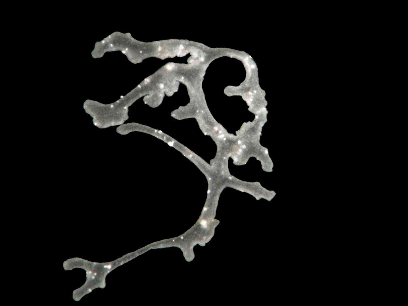 Trichoplax adhaerens und Hoilungia hongkongensis – so heißen die beiden anderen Plattentierarten – besitzen eine klare Polarität. „Das heißt, ihr kompakter scheibenförmiger Körper kann in ein Oben und ein Unten eingeteilt werden“, erklärt Schierwater. Die neue Art besitzt hingegen keine kompakte Scheibenform und ist stark verzweigt. „Wir sammelten das Lebewesen in einer Zone mit ungewöhnlich starker Brandung. Es scheint sich an diese Umgebung angepasst zu haben, indem es seinen Körper in lange Verzweigungen auszieht. Diese verankern sich in kleinen Hohlräumen und Ritzen des Gesteins und geben dem Tier Halt“, vermutet Schierwater.