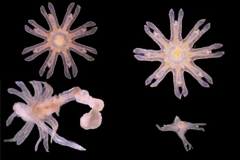 Ohrenquallen durchlaufen eine komplexe Abfolge mehrerer Lebensstadien, bei denen sie sukzessive von einer ortsfesten Lebensweise - dem Polyp - am Meeresboden schließlich zu einem frei im Wasser schwimmenden Stadium als ausgewachsene Medusen übergehen. Die Anwesenheit eines natürlichen Mikrobioms ist also offenbar Voraussetzung für den ungestörten Ablauf dieses Prozesses. Fehlte den Polypen im Experiment die mikrobielle Besiedlung, kam dieser Lebenszyklus an einem Punkt schließlich ganz zum Erliegen: Das Freisetzen des ersten frei im Wasser lebenden Stadiums - der Ephyren - ist unter keimfreien Bedingungen nicht möglich. Dass diese Unterbrechung kein Effekt der Antibiotika-Gabe war, konnten die Forschenden mit einem Wiederbesiedlungs-Experiment zeigen: Siedelten sie die charakteristischen Mikrobenarten erneut auf den keimfrei gemachten Polypen an, stellte sich auch der normale Ablauf der Reproduktion wieder ein.