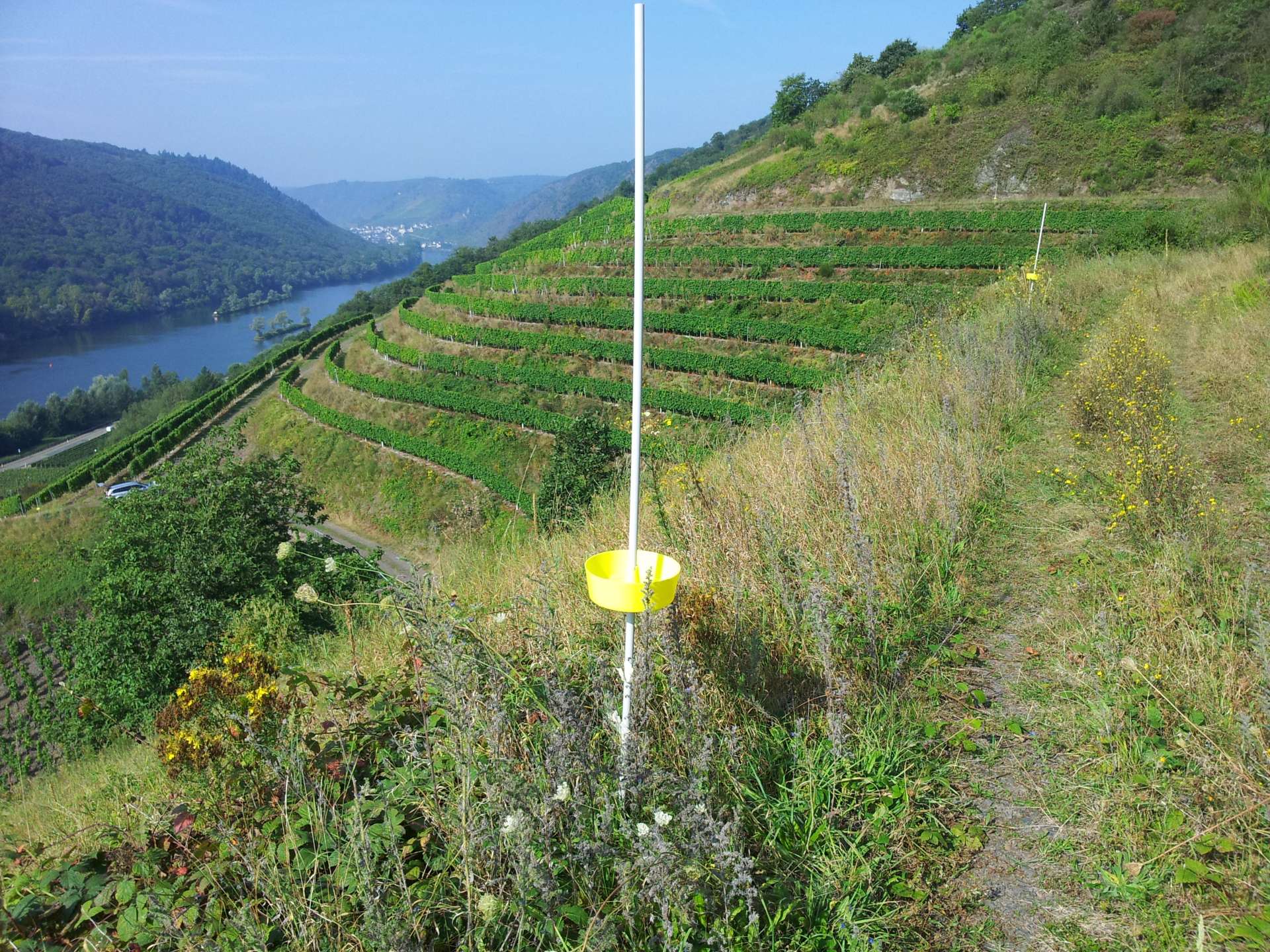 Doch genau hier beginnt das Problem: Die verschiedenen, derzeit am häufigsten angewandten Nachweisverfahren sind schwer vergleichbar und liefern unterschiedliche Ergebnisse. Schmitt hat daher mit Forschenden des JKI an den Standorten Braunschweig und Siebeldingen sowie des DLR Mosel die gängigsten Probenahme-Methoden – das Fangen mit einem Handkescher, Farbschalen und Nistfallen – miteinander verglichen und qualitativ bewertet. In ihrem Untersuchungsgebiet, einer Weinbaulandschaft im rheinland-pfälzischen Moseltal hat das Team hierfür insgesamt 10.330 Tiere aus 134 Arten für ihren Vergleich gefangen und analysiert. Weitere 2.225 Individuen aus 99 Wildbienenarten wurden ergänzend für eine Gegenüberstellung zu den sogenannten „Malaise-Fallen“ – zeltartige Gebilde zum Fang von fliegenden Insekten – in die Auswertung einbezogen.