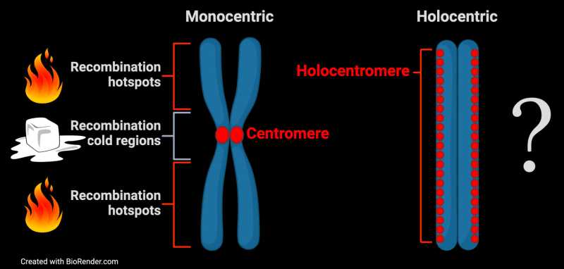 Bekannt ist, dass die Crossing-Over-Aktivität in den Regionen nahe dem Zentromer reduziert ist und eher in den vom Zentromer entfernten Bereichen auftritt. Es findet also keine genetische Rekombination von Genen in der Nähe des Zentromers statt. Dieses Phänomen ist als "Zentromereffekt" bekannt und legt nahe, dass das Zentromer selbst die Crossing-Over-Aktivität und -Verteilung beeinflusst.