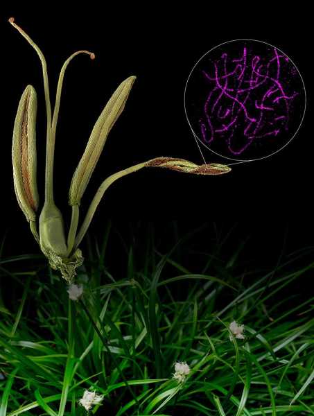 Für ihre Studie nutzten die Forschenden die Schnabelriede, eine grasartige Blütenpflanze (Rhynchospora breviuscula), ein hervorragendes natürliches Werkzeug zur Untersuchung der Entstehung genetischer Rekombination. Die Modellpflanze besteht im Gegensatz zu Pflanzen deren Chromosomen nur ein Zentromer besitzen (monozentrische Pflanzen) aus Chromosomen mit Hunderten von kleinen Zentromeren, die in einer Linie über das Chromosom angeordnet sind. Mit diesem so genannten holozentrischen Chromosomen schließen die Forschenden den Einfluss eines lokalisierten Zentromers ebenso aus, wie die in Abschnitte unterteilte Organisation eines Chromosoms, bei der Zentromere und Gene gleichmäßig über das Chromosom verteilt sind.