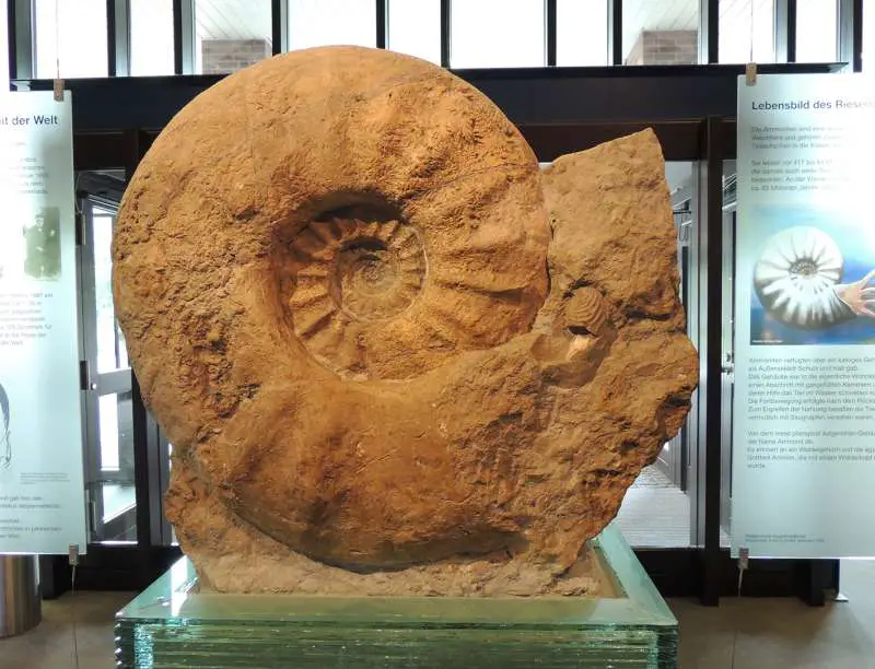 Der größte Ammonit der Welt: Parapuzosia seppenradensis aus Seppenrade in Westfalen (Durchmesser: 1,74 Meter). Das Fossil steht im Naturkundemuseum Münster.