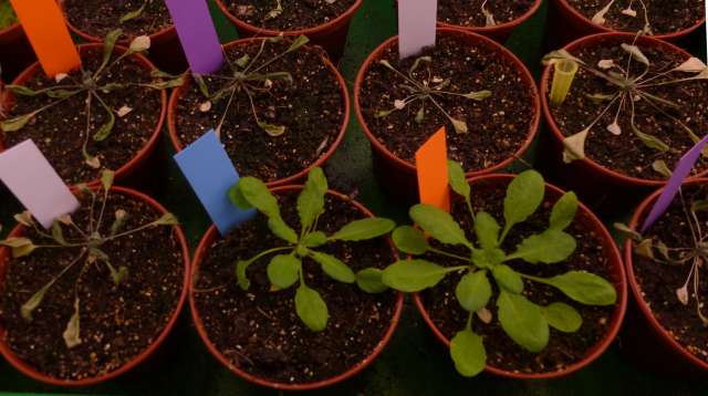 Nun haben die Wissenschaftler Hinweise darauf gefunden, dass ein bestimmtes Protein, SERRATE genannt, dieses Dilemma entschärft. Bisher war bekannt, dass dieses Molekül eine wichtige Rolle bei der Entwicklung der Ackerschmalwand spielt. Es beeinflusst beispielsweise auf vielfältige Weise das Botenmolekül RNA, das die Informationen aus den Genen für den Zusammenbau von Proteinen überträgt. Die Forscher um Laubinger wollten der Rolle des Moleküls nun weiter auf die Spur kommen: Sie untersuchten mit molekulargenetischen Methoden an einer genetisch veränderten Variante und der Wildform der Pflanze, an welche Gene das Protein andockt. Zudem führten sie Stress-Experimente mit Kälte durch. Dabei zeigte sich: „SERRATE bindet vor allem an die Gene, die keine Introns haben, und auf Stress reagieren. Dabei verstärkt das Protein das Ablesen dieser Gene unter Stress“, sagt Laubinger. Es ermögliche damit der Pflanze, sowohl schnell als auch wirkungsvoll auf geänderte Umweltbedingungen zu reagieren.