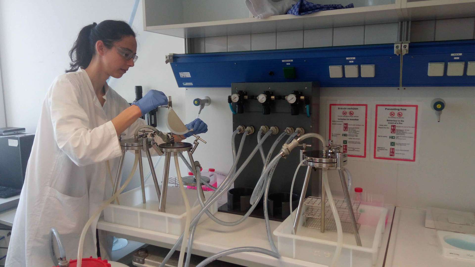 Um das Partikel-Geflecht zu entwirren und mikrobiell resistente Zucker zu finden, testen die Bremer Wissenschaftlerinnen und Wissenschaftler ständig neue Verfahren. Das ist notwendig, da diese organischen Stoffgemische so komplex und die marinen Zucker fest eingebunden sind. Für die vorliegende Studie verwendeten die Forschenden eine Methode, die ursprünglich aus der Medizin- und der Pflanzenforschung stammt. Sie kombiniert die hohe Durchsatzkapazität von Microarrays mit der Genauigkeit von monoklonalen Antikörpern. Das bedeutet, dass die Wissenschaftler die Zuckermoleküle aus den Meerwasserproben extrahiert und in eine Maschine eingesetzt haben, die wie ein Drucker funktioniert. Nur, dass dieser „Drucker“ keine Tinte, sondern Moleküle verwendet. Die Moleküle werden einzeln auf Nitrocellulosepapier „gedruckt", den Microarray. Ein Microarray ähnelt einem Mikrochip; klein wie ein Fingernagel kann er Hunderte von Proben enthalten. Sind die einzelnen Zuckermoleküle auf den Mikroarray aufgetragen, können die enthaltenen Zucker analysiert werden. Dies wurde mit monoklonalen Antikörpern gemacht. Einzelne Antikörper werden zu den Zuckermolekülen auf dem Array gegeben, und da sie jeweils mit nur einem spezifischen Zucker reagieren, können die Forschenden sehen, welche Zucker in der Probe enthalten sind.