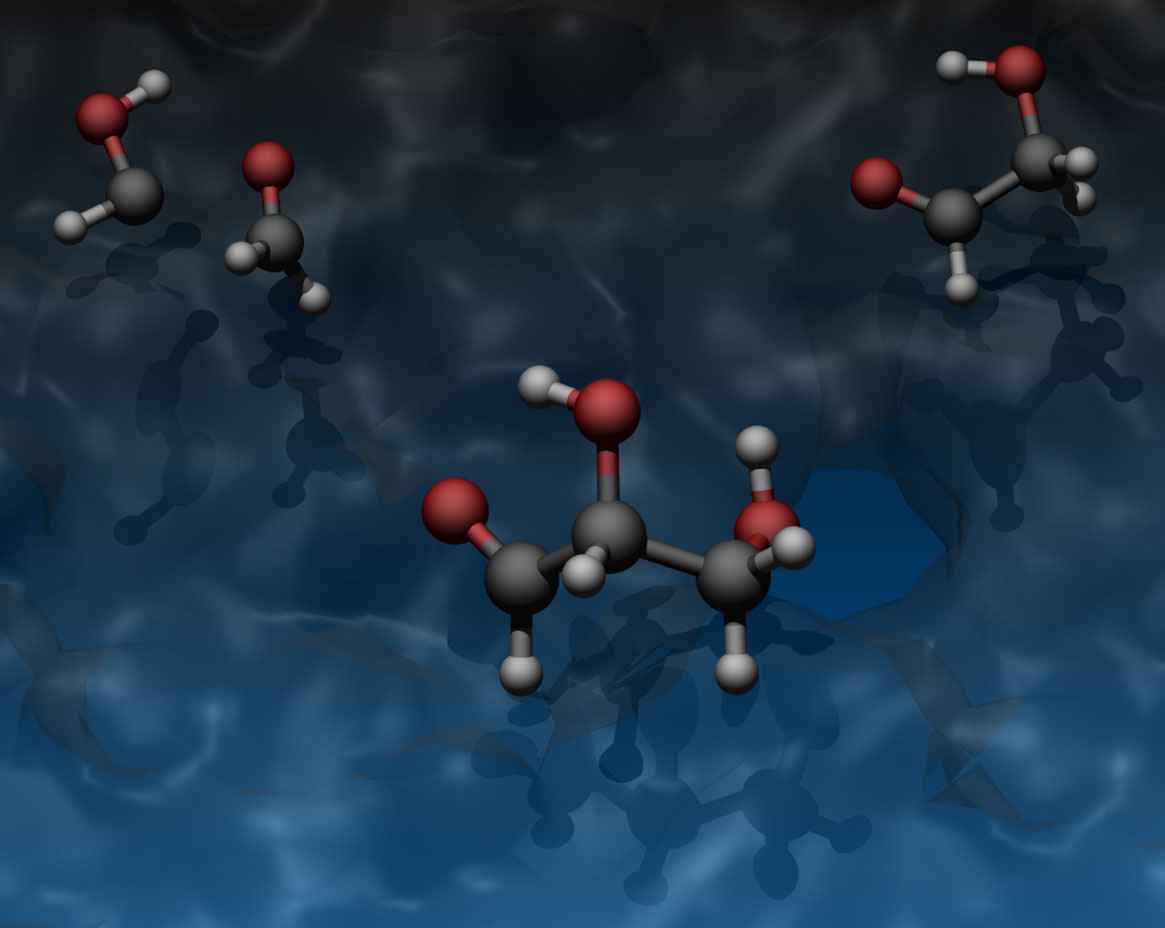 Hydroxymethylen reagiert in der Gasphase tatsächlich mit Formaldehyd zu Glycolaldehyd – dem denkbar einfachsten Zucker – und weiter zur Triose Glyceraldehyd, der nächsthöheren Zuckerverbindung aus der Gruppe der sogenannten Aldosen. Die Reaktion ist nahezu barrierelos und hochproduktiv, selbst bei extrem niedrigen Temperaturen von Bedingungen minus 261 Grad Celsius, wie sie in vielen Regionen des interstellaren Raums anzutreffen sind. Die Studie zeigt somit, dass sich Zucker auch ohne Biosynthese aus sehr einfachen Bausteinen bilden können.