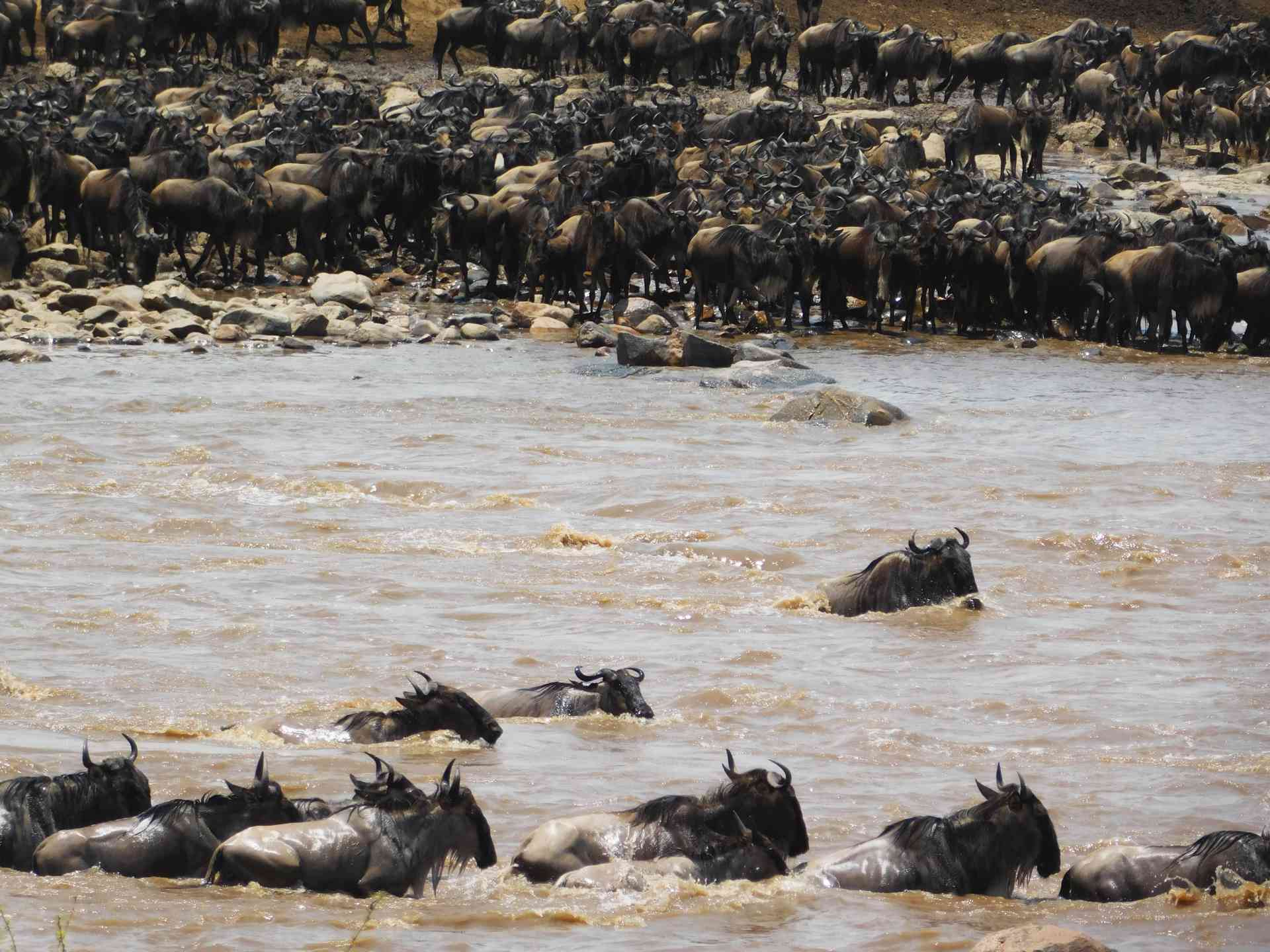 Wandernde Gnus überqueren den Mara River – künftig wohl ein immer seltenerer Anblick