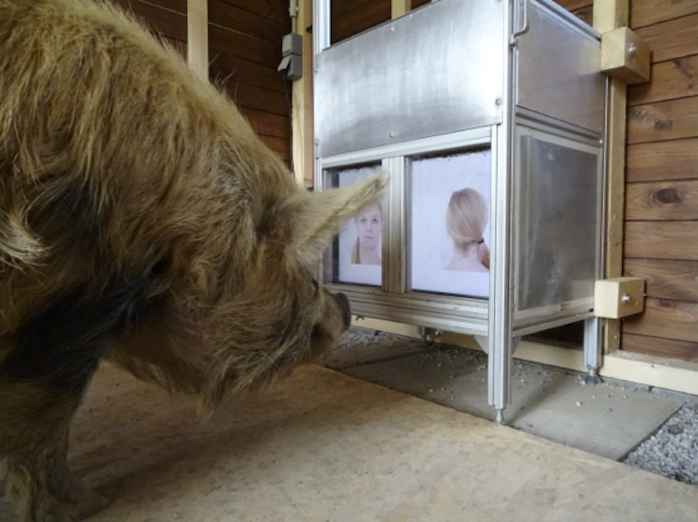 Dazu wurden zwei Gruppen in einem ersten Schritt auf die Unterscheidung des menschlichen Gesichts und des Hinterkopfes von 10 Personen trainiert. Im Gegensatz zu anderen Versuchen wurden den Schweinen nur Fotos auf einem Monitor gezeigt. Entweder die Vorder- oder Rückansicht des menschlichen Kopfes führte bei richtiger Auswahl zu einer Belohnung. „Wichtig war uns, dass sie sich mit einer zweidimensionalen Vorlage beschäftigen mussten. Damit blieben sowohl bereits bewiesenes Formverständnis oder olfaktorische Faktoren außen vor. Nur das visuelle Wahrnehmungsvermögen, das bislang als eben nicht besonders ausgeprägt verstanden wurde, war somit gefordert, erklärt Studienleiter Ludwig Huber.