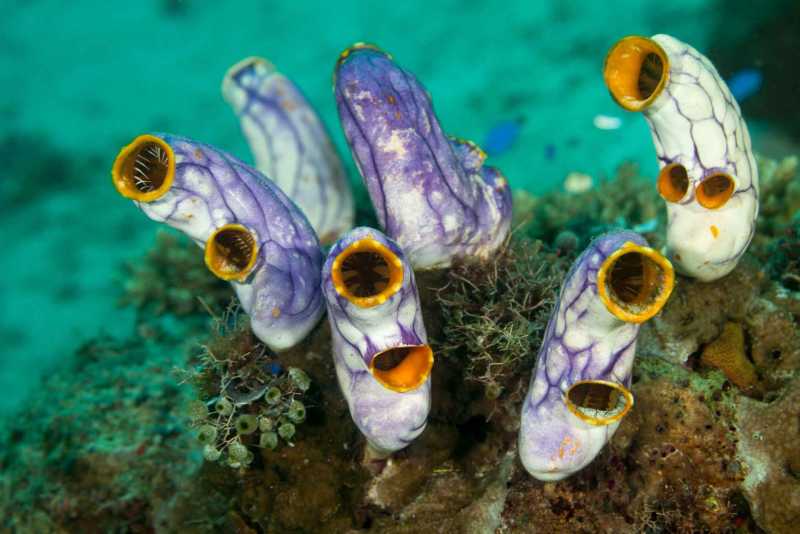 Seescheiden an einem Riff. Der Meeresorganismus ist ein hervorragendes Modell, um Entwicklungsprozesse bei Wirbeltieren zu untersuchen.