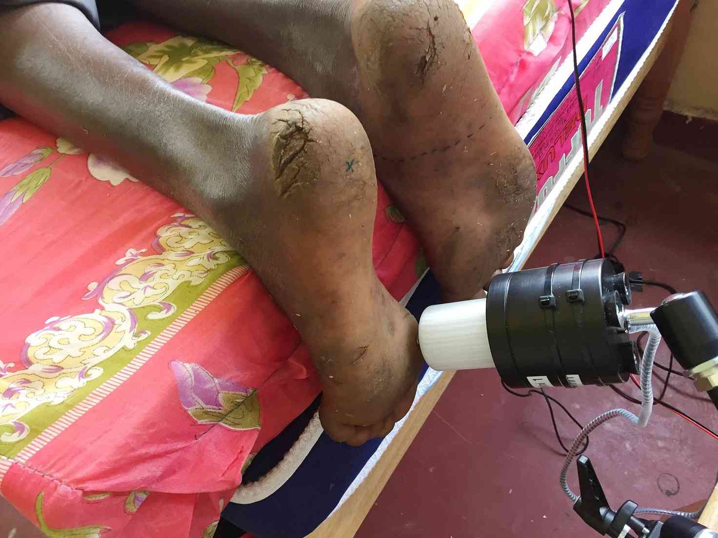 Mit einem Vibrationsgerät konnte zudem die Empfindlichkeit der Fußsohlen gemessen werden. Dazu wurden unterschiedlich große Vibrationen über ein Messgerät abgefragt, um die Wahrnehmungsschwelle jedes Probanden zu finden. Als Kontrollgruppe dienten Kenianerinnen und Kenianer, die regelmäßig Schuhe tragen. Unterstützung erhielten die Forscherinnen und Forscher vom Institut für Physiologie der Moi University (Kenia).