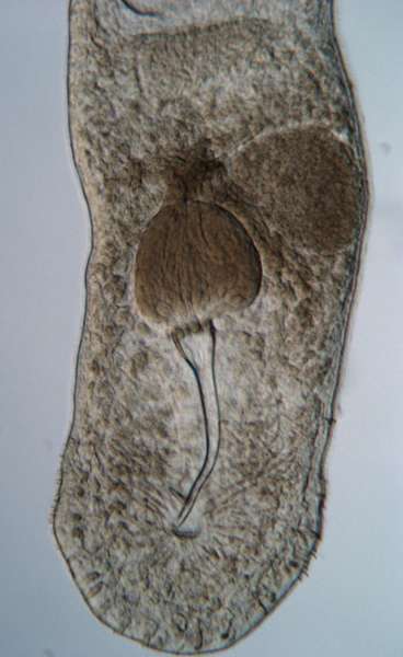 Macrostomum-Würmer kommen weltweit im Wasser und an feuchten Standorten vor. Sie sind sogenannte Simultanzwitter, also gleichzeitig männlich und weiblich. Die Würmer sind praktisch durchsichtig, sodass sich die Grösse von Hoden und Eierstöcken unter dem Mikroskop am lebenden Tier leicht messen lässt.