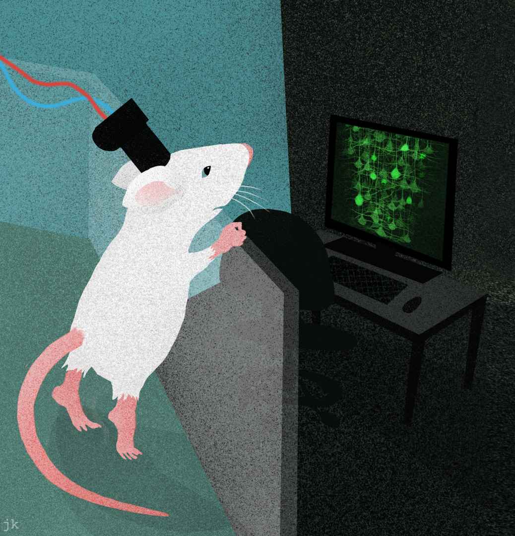 Eines der grundlegenden Ziele der Neurowissenschaften ist es zu verstehen, welche Prozesse im Gehirn ablaufen, um Verhalten als Reaktion auf Umweltreize zu erzeugen. Das Verhalten von Tieren kann man untersuchen, indem man beobachtet, wie ein Tier Probleme löst, aber um Einblick in die Rolle des Gehirns bei der Erzeugung von Verhalten zu erlangen, muss gleichzeitig die Aktivität der Hirnschaltkreise gemessen werden. Nun ist die In-vivo-Bildgebung in der Biologie nichts Neues; sie reicht zurück bis in die Anfänge der Mikroskopie. Spezielle Mikroskope sind in der Lage, das Gewebe zu durchdringen, die neuronalen Schaltkreise bei der Arbeit zu beobachten und so einen Einblick in das Innere des Gehirns zu ermöglichen.