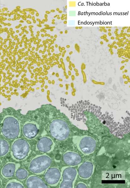 „Da diese Endosymbionten innerhalb des Muschelgewebes leben, haben sie eine deutlich engere symbiotische Beziehung zur Muschel entwickelt. Bevor sich Thiobarba erfolgreich auf den Kiemen von Bathymodiolus ansiedeln konnte, müssen sich ihre Vorfahren das nötige Handwerkszeug von den Endosymbionten abgeschaut haben. Dadurch war es ihren Nachfahren möglich, den Muschelwirt so erfolgreich zu besiedeln.“