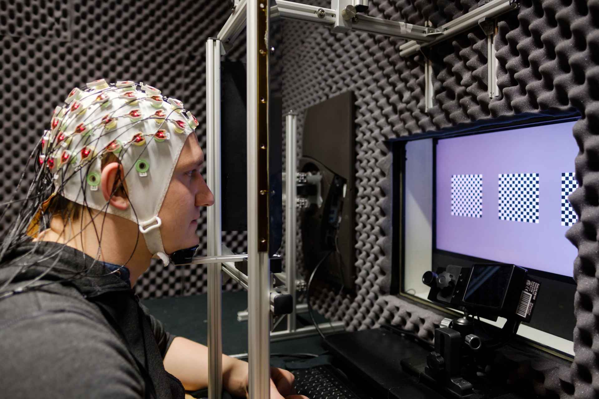 Ablenkung erwünscht: Probanden mit EEG-Kappe helfen der Neurophysik, Hirnaktivitäten zu studieren.