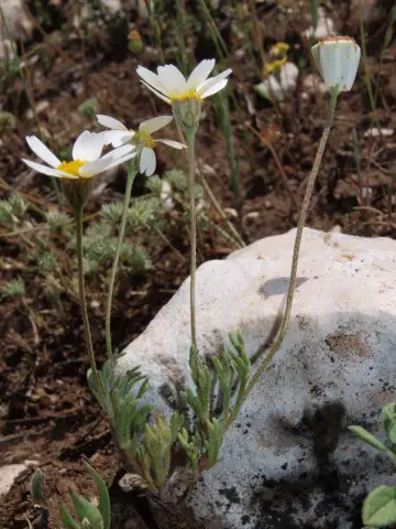Nur wenige Monate im Frühjahr zu sehen: Castrilanthemum debeauxii, eine der seltensten Pflanzenarten der iberischen Halbinsel, findet sich auf einigen Bergrücken (Sierras) Ostandalusiens.