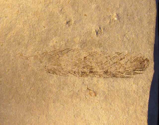 Der Gattungsname des berühmten Urvogels Archaeopteryx bezieht sich auf die erste fossile Feder überhaupt, welche 1861 in der Gegend von Solnhofen gefunden wurde. Über einen langen Zeitraum repräsentierte diese Feder den Holotyp von Archaeopteryx und war eng mit den später gefundenen Körperfossilien von Archaeopteryx verbunden. Im Gegensatz zu den Federeindrücken, die an manchen dieser Körperfossilien zu finden sind, ist die isolierte Feder dunkel gefärbt und von einem Film von Kalk- oder Manganoxiden überzogen.
