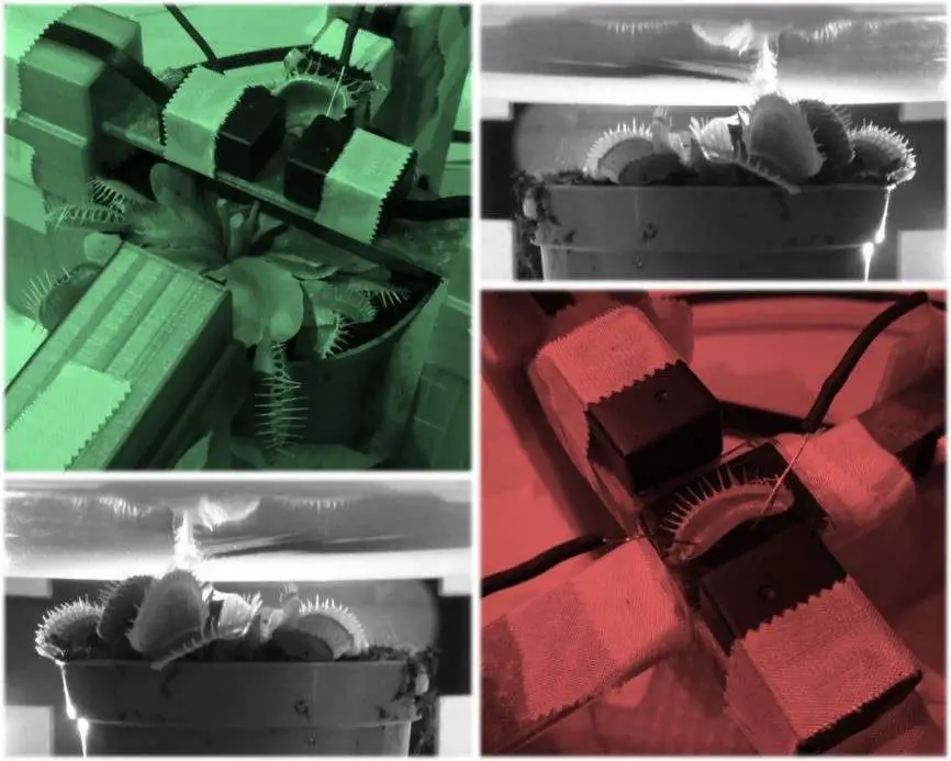 Die Falle von Dionaea muscipula besteht aus einem zweiteiligen Fangblatt mit empfindlichen Haaren, die bei Berührung ein Aktionspotenzial in der ganzen Falle auslösen. Nach zwei aufeinanderfolgen Stimulationen schließt die Falle und das mögliche Beuteinsekt wird für die anschließende Verdauung eingesperrt. Interessanterweise ist die Falle auf ganz unterschiedliche Art elektrisch erregbar: Nicht nur mechanische Einwirkung wie Berührung oder Verletzung, sondern auch Osmose, etwa Salzwasser, und thermische Energie wie Hitze oder Kälte können ständig Aktionspotenziale auslösen. In seinen magnetischen Messungen hat das Forscherteam für diese Studie Wärmestimulation benutzt, um damit beispielsweise unerwünschte mechanische Geräusche zu vermeiden.