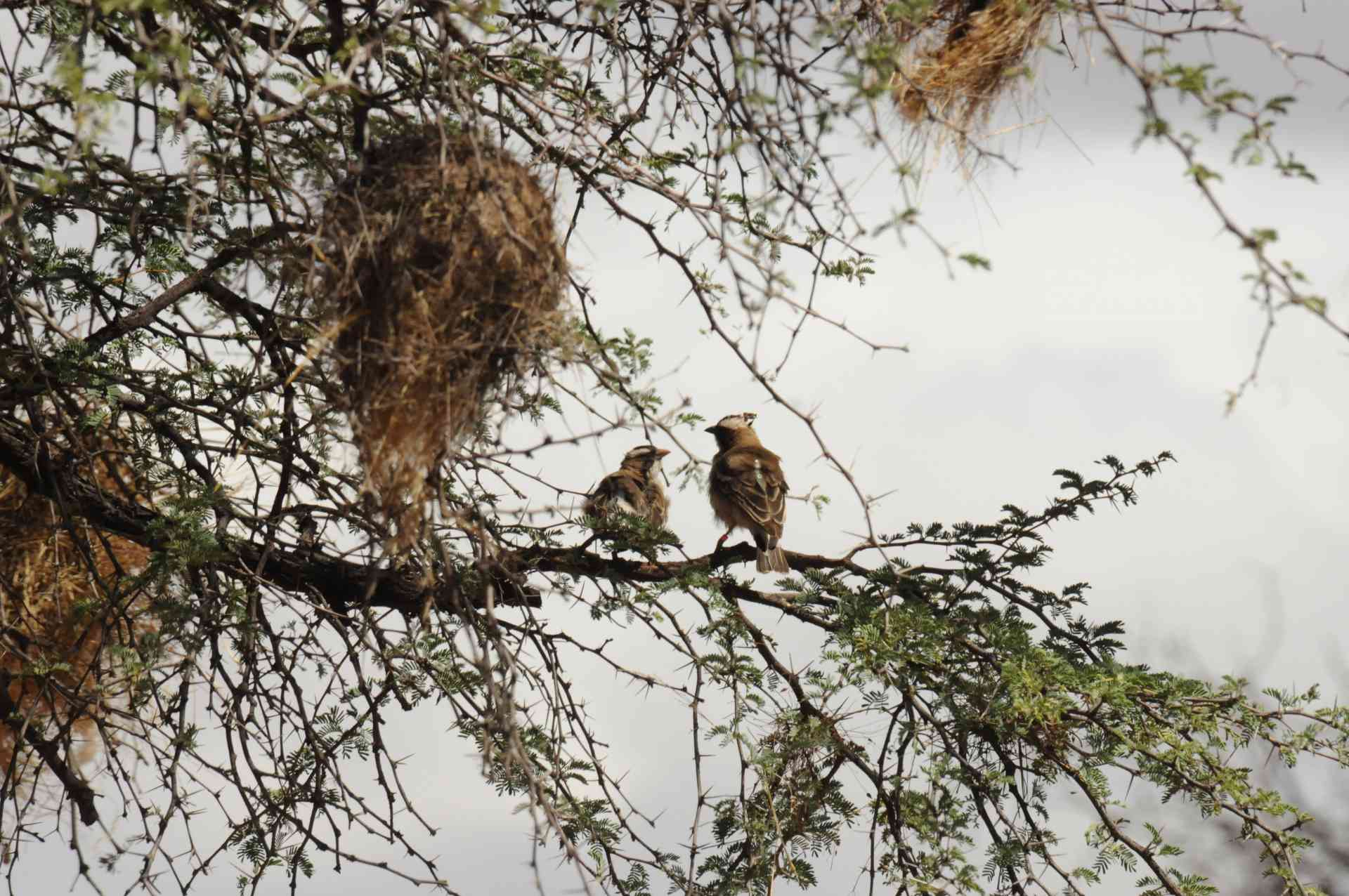 Mahaliweber (Plocepasser mahali) leben im südlichen und östlichen Afrika in kleinen Gruppen in einem Baum zusammen. Jedes Tier hat ein Schlafnest mit einem Ein- und Ausgang. Das Brutnest ist leicht daran zu erkennen, dass ein Gang geschlossen ist, damit die Eier nicht herausfallen. Neben dem dominanten Paar gibt es bis zu acht weitere Tiere in der Gruppe, die dabei helfen, Nester zu bauen und die Jungtiere großzuziehen.
