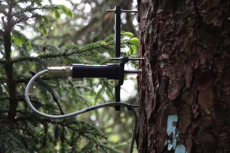 In der weltweit ersten umfassenden Studie zum Dickenwachstum von Baumstämmen mit einer stündlichen Datenauflösung analysierten die Forschenden Daten, die bis zu 8 Jahre an 170 Buchen, Fichten und anderen häufigen Baumarten an 50 Standorten in der ganzen Schweiz aufgezeichnet wurden (> 60 Mio. Datenpunkte). An der Studie waren Forschende der ETH Zürich, des Instituts für Angewandte Pflanzenbiologie IAP, sowie weiterer Forschungseinrichtungen aus der Schweiz und Europa beteiligt. Die untersuchten Standorte sind Teil von TreeNet. In diesem Netzwerk erheben Forschende seit 2011 in Schweizer Wäldern neben Informationen über die Trockenheit von Luft (Dampfdruckdefizit, VPD) und Boden (Bodenwasserpotenzial) auch automatisiert die Radiusänderungen von Baumstämmen mit hochpräzisen Punktdendrometern (siehe Abb. 1).