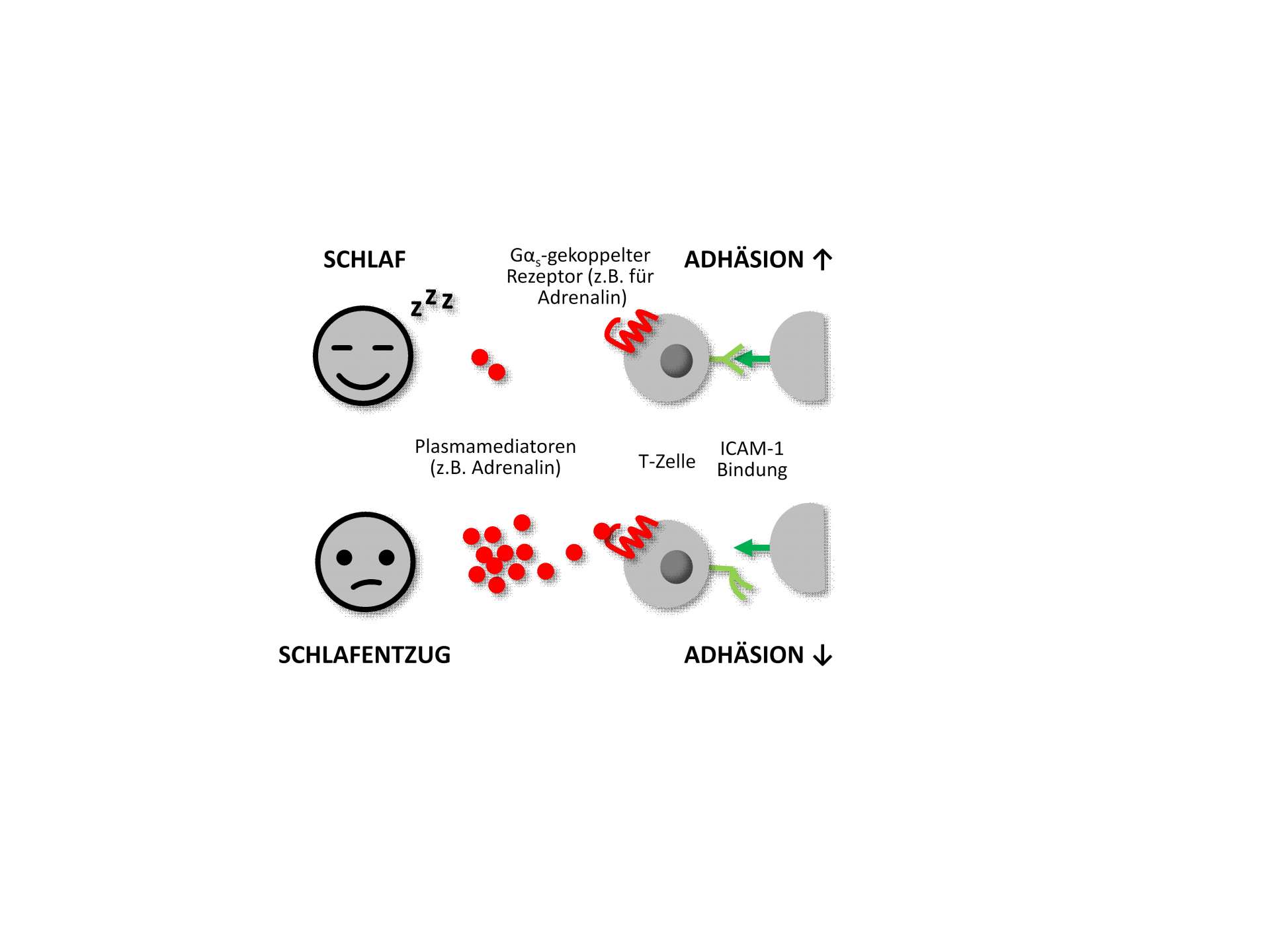 Diese Unterdrückung der T-Zellfunktion konnte das Team in einem weiteren Experiment rückgängig machen, indem es eine bestimmte Rezeptorklasse blockierte, sogenannte Gαs-gekoppelte Rezeptoren: Über diese wirken unter anderem das Stresshormon Adrenalin und Prostaglandine, Hormone die bei Entzündungen eine Rolle spielen. „Dies zeigt, dass bereits bei kurzem Schlafentzug lösliche Stoffe diese Rezeptoren aktivieren und darüber auch die Adhäsion der T-Zellen beeinträchtigen“, so die Studienleiterin Luciana Besedovsky.