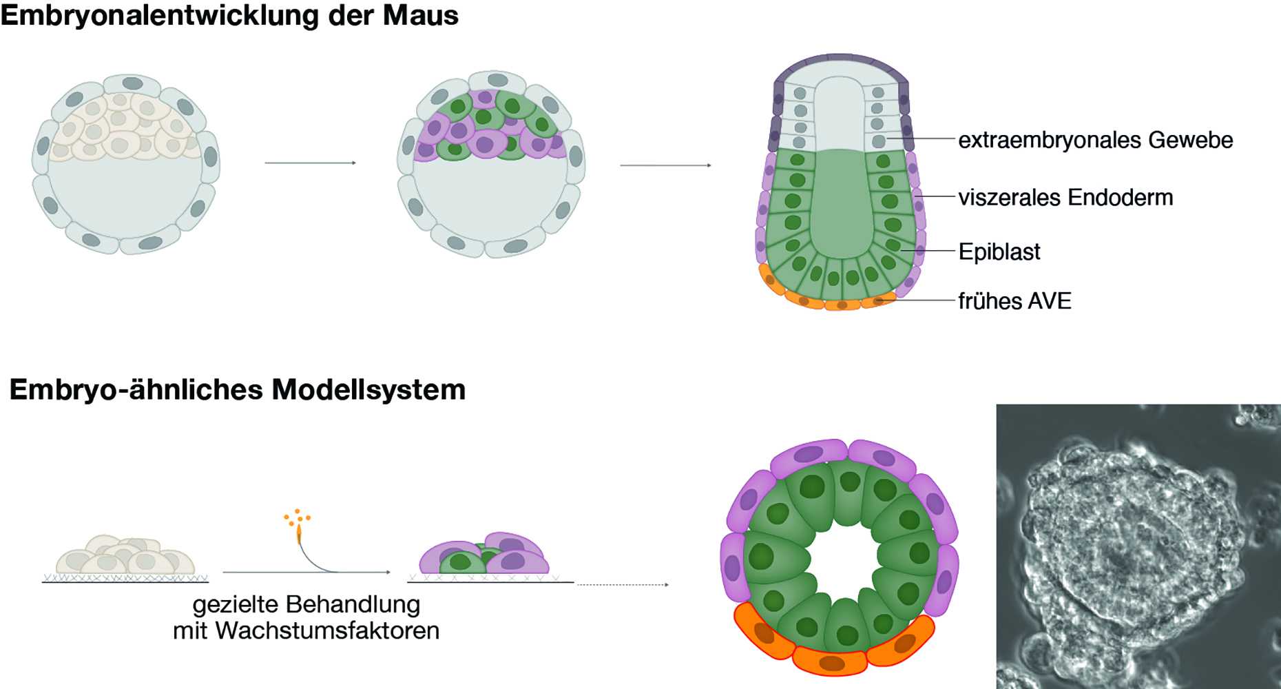 „Unsere zweischichtigen Embryo-ähnlichen Aggregate waren der Schlüssel zum Erfolg. Andere Studien nutzen meistens eine Mischung aus verschiedenen Stammzelllinien. Die von uns verwandten Zellpopulationen stammen jedoch aus nur einer Stammzelllinie. Somit haben sie nicht nur einen identischen genetischen Hintergrund, sondern nutzen auch dieselben Kommunikationssysteme. Man könnte auch sagen, sie sind auf einer Wellenlänge“, fasst Schröter zusammen. „Aggregate aus humanen embryonalen Stammzellen, die sich an unserem System orientieren, könnten in Zukunft ein vielversprechendes experimentelles Werkzeug zur Untersuchung der Ereignisse während der Embryonalentwicklung sein.“
