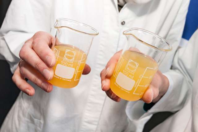 „Bei dem Saft waren das bei den meisten Probanden rund 1,2 Liter, bei Cola etwa ein Liter täglich“, erklärt Carle. Im Sinne einer sogenannten Cross-over-Studie gab es für die Teilnehmenden nach den ersten 14 Tagen eine Auswaschungsphase von einer Woche, dann stiegen die Orangensaft-Trinker auf Cola um und umgekehrt.